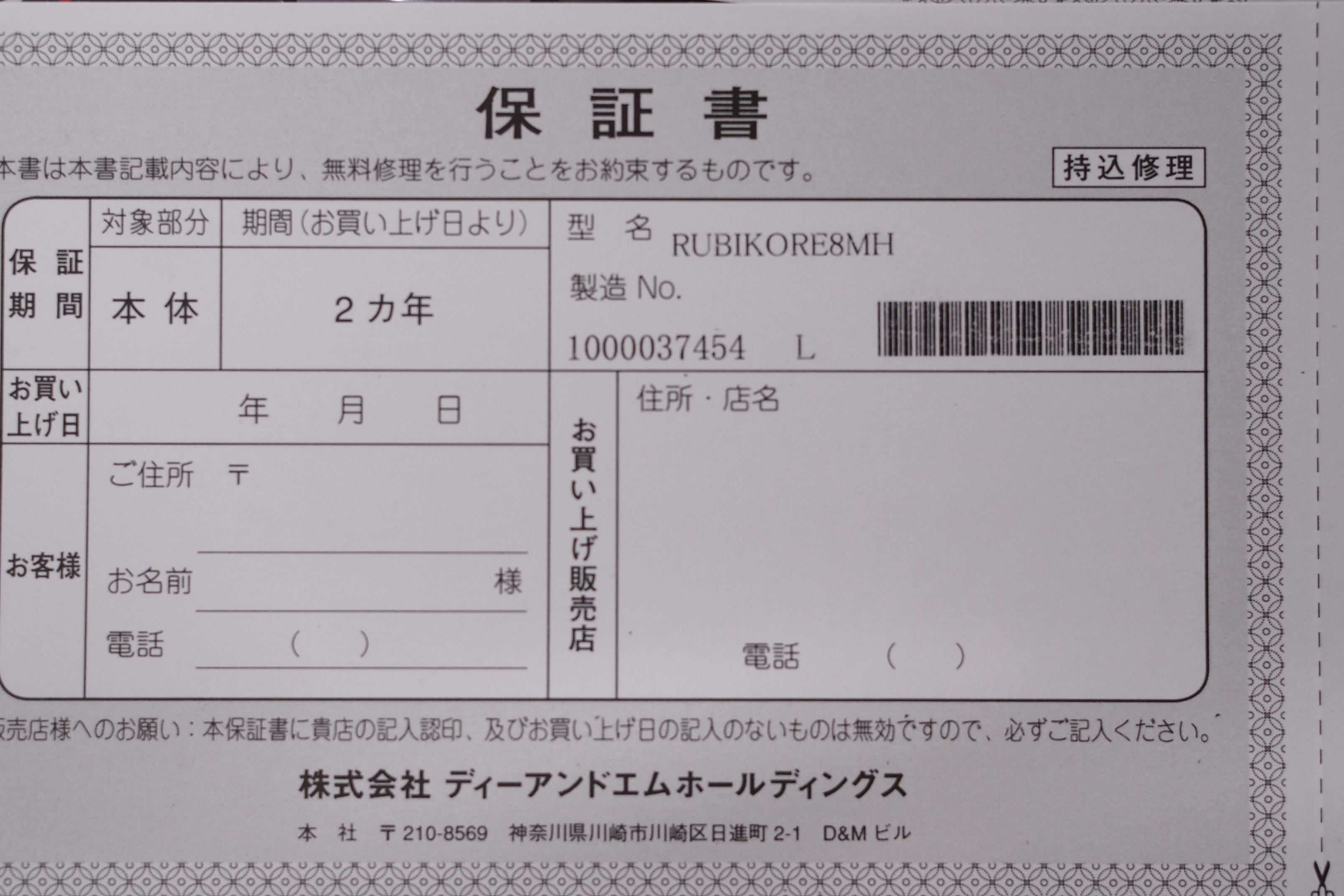 ●保証期間:お買い上げ日からメーカー保証