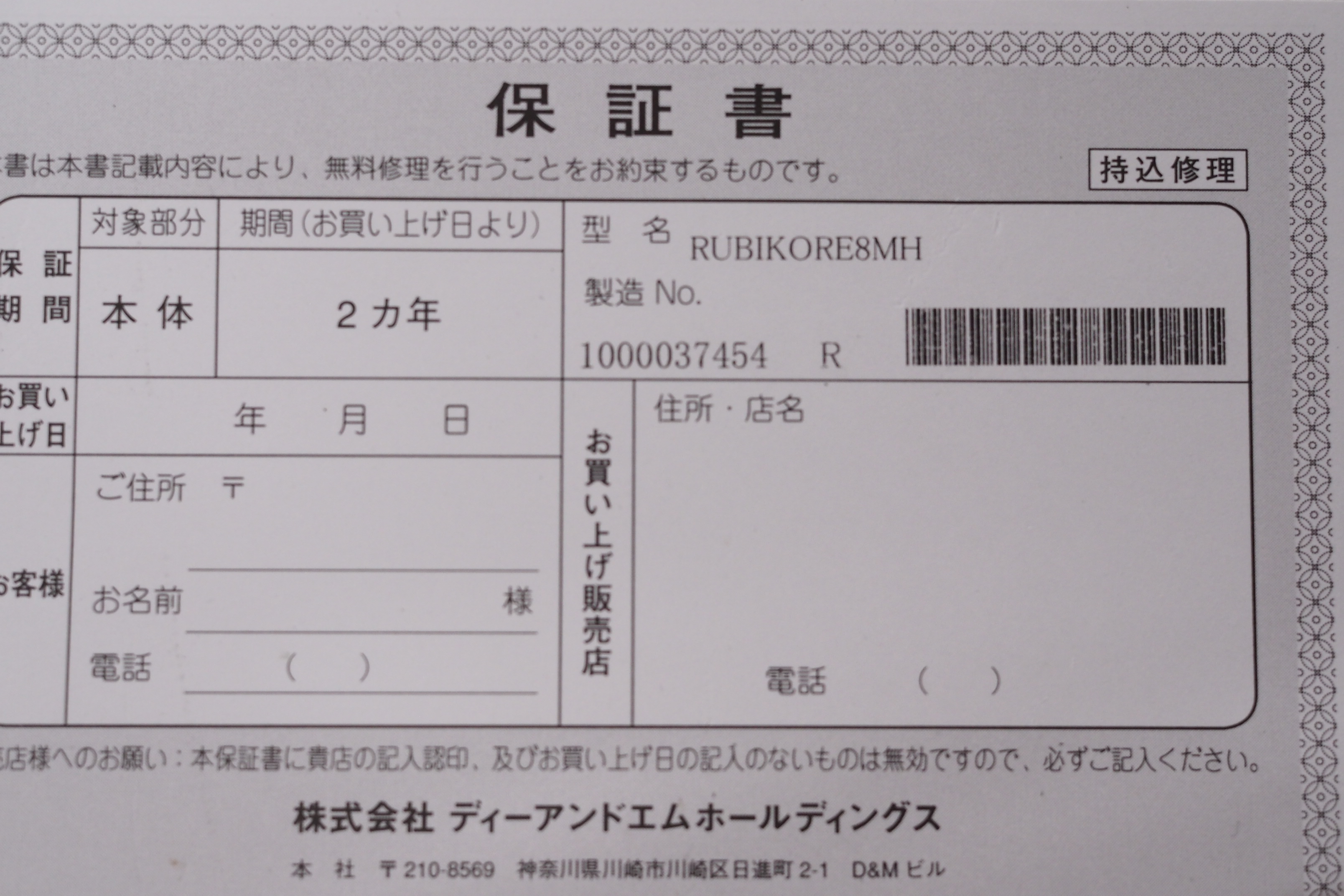 ●保証期間:お買い上げ日からメーカー保証