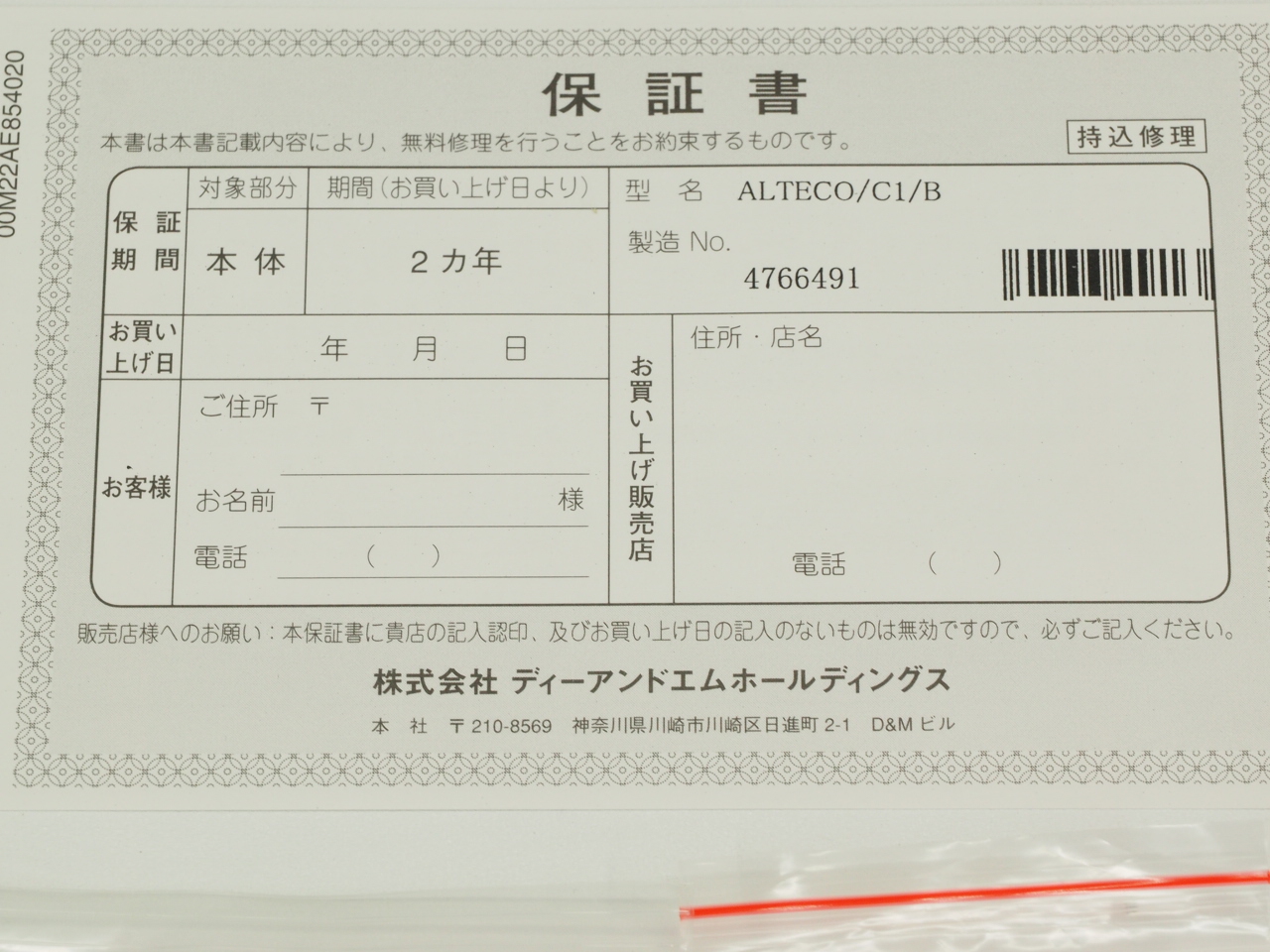 ●保証期間:お買い上げ日よりメーカー保証