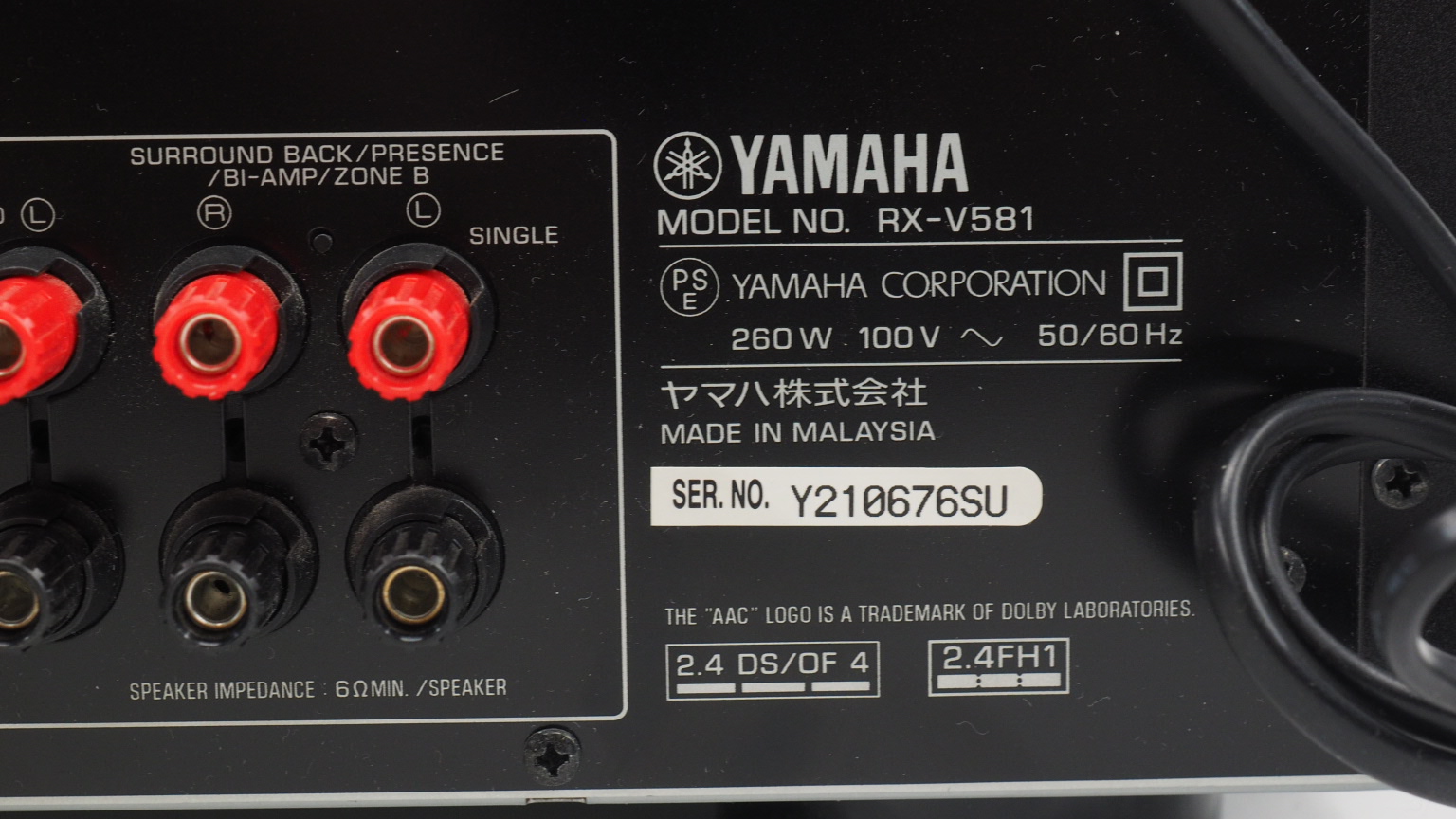 ヤマハのAVアンプ『RX-V581』!!