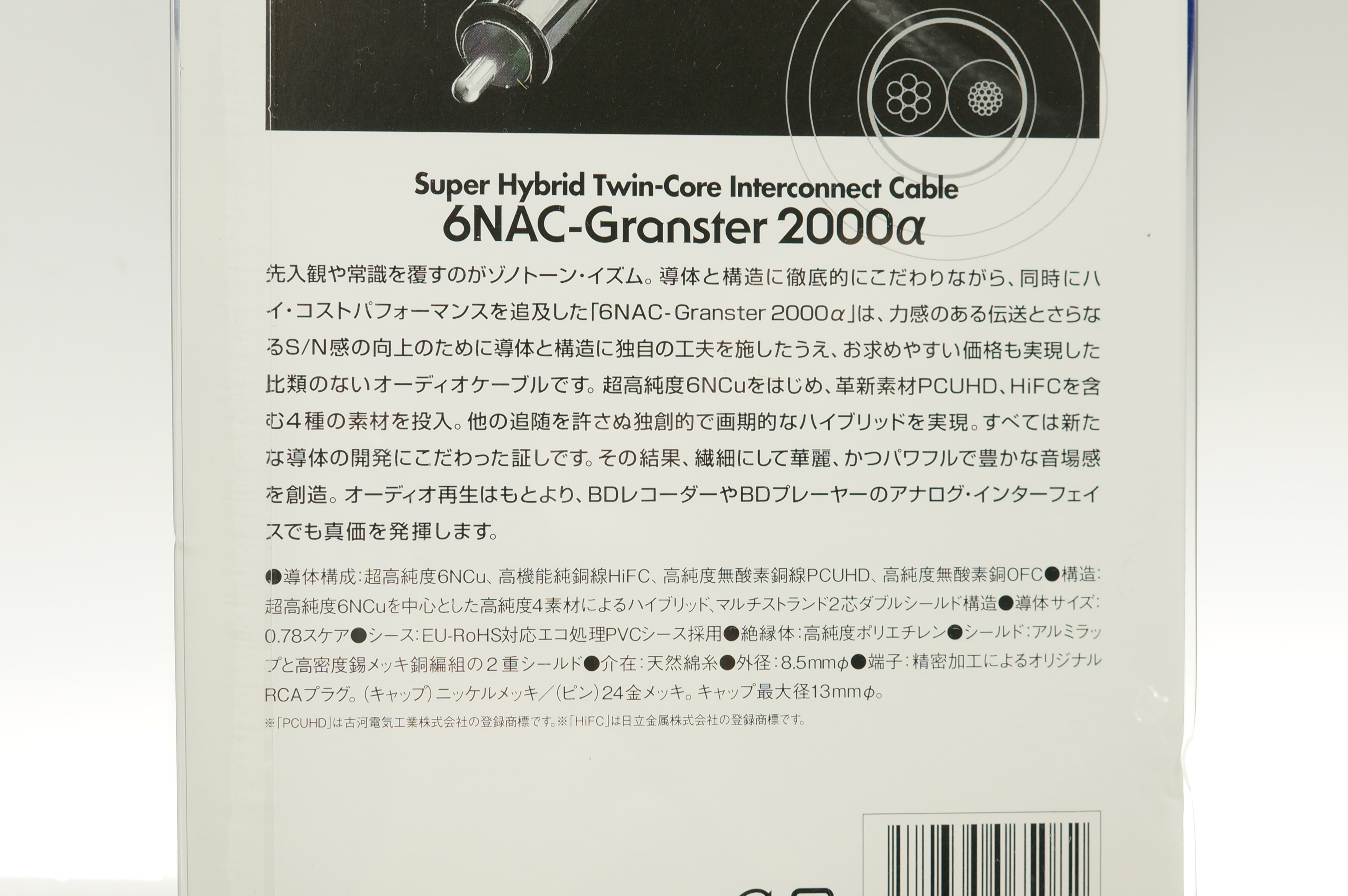 ゾノトーンのRCAオーディオケーブル(1.0m、ペア)『6NAC-Granster 2000α/1.0m』