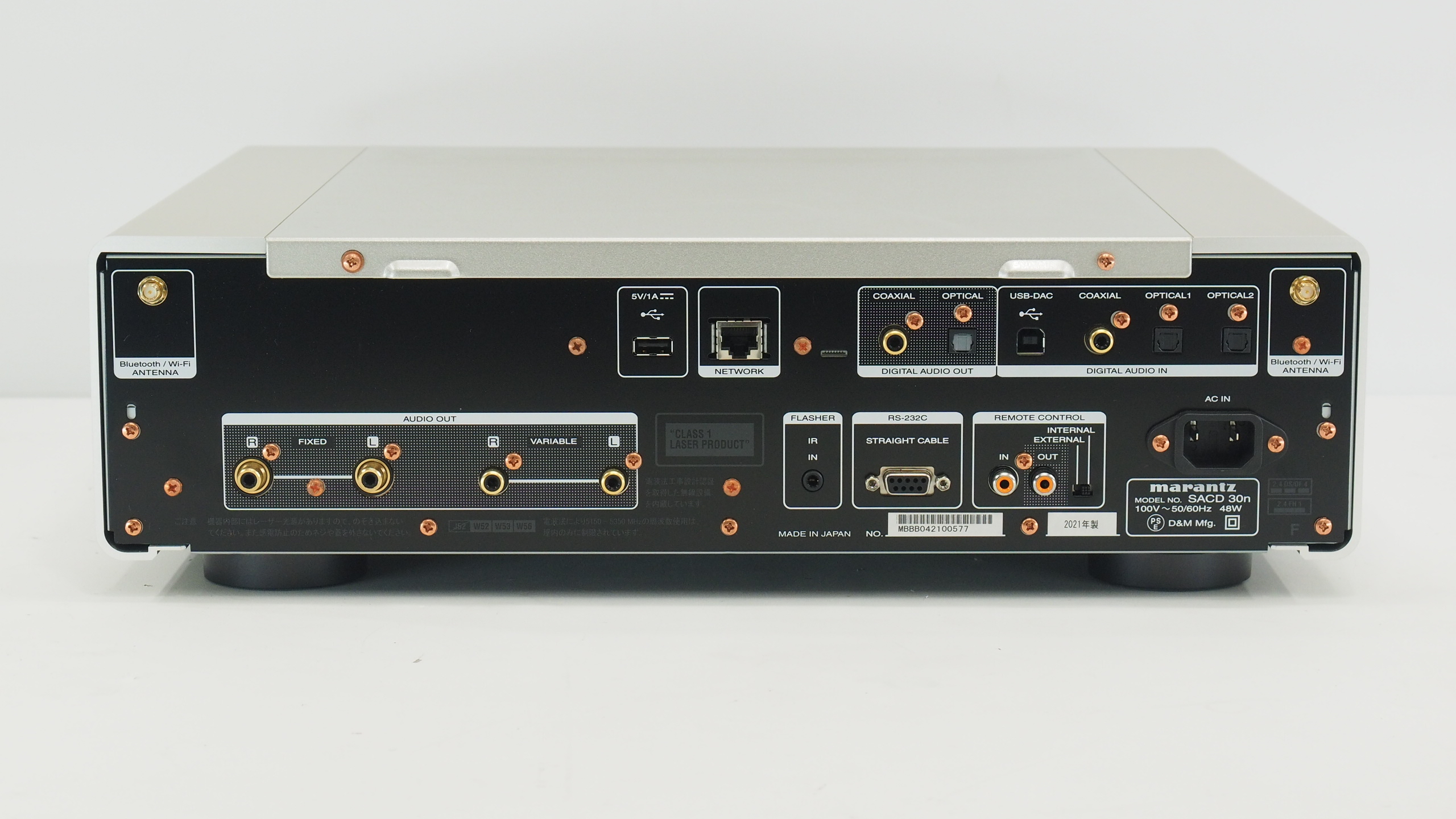 その他入出力端子 ネットワーク× 1、Bluetooth / Wi-Fiアンテナ入力×2、RS-232C× 1、フラッシャー入力×1、マランツリモートバス(RC-5)入出力 × 1
