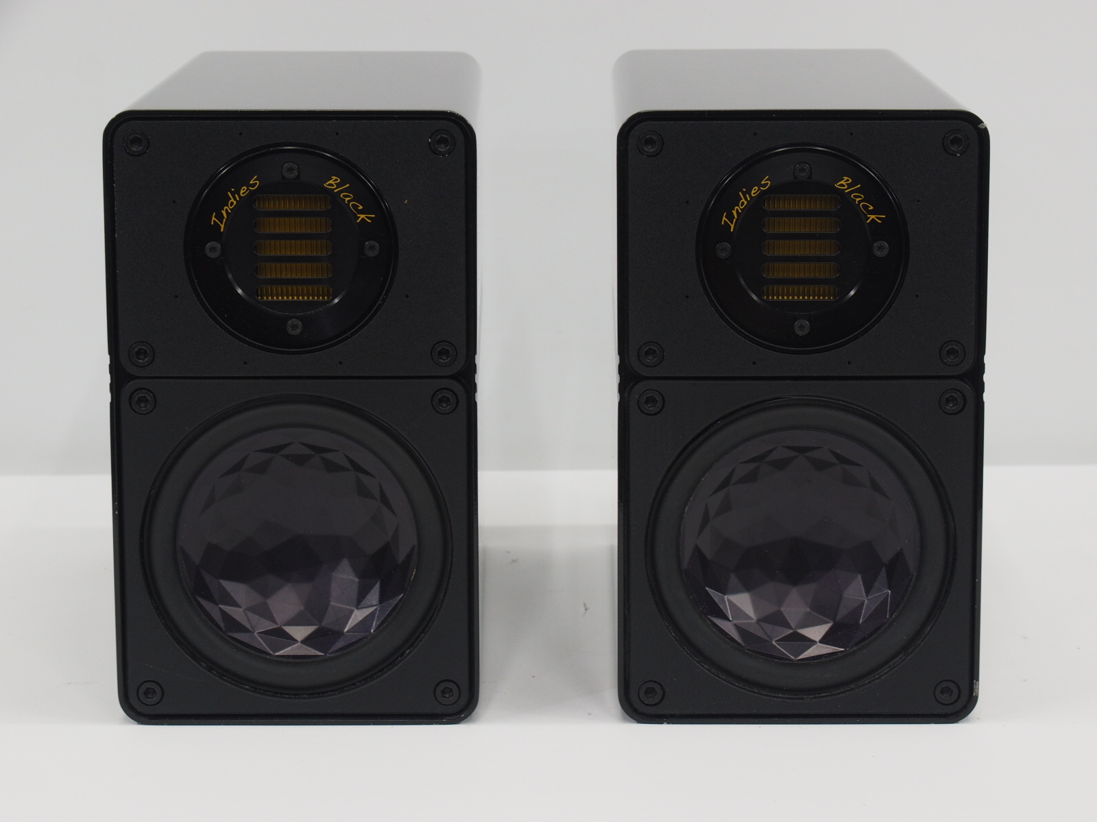 共にクルトミューラーから供給を受けるペーパー・コーンにアルミニウム・コーンを 重ねた振動板は軽量で内部損失に優れ、クリスタル・ラインと呼ばれる幾何学模様のパターンはその強度を10倍に高めています。