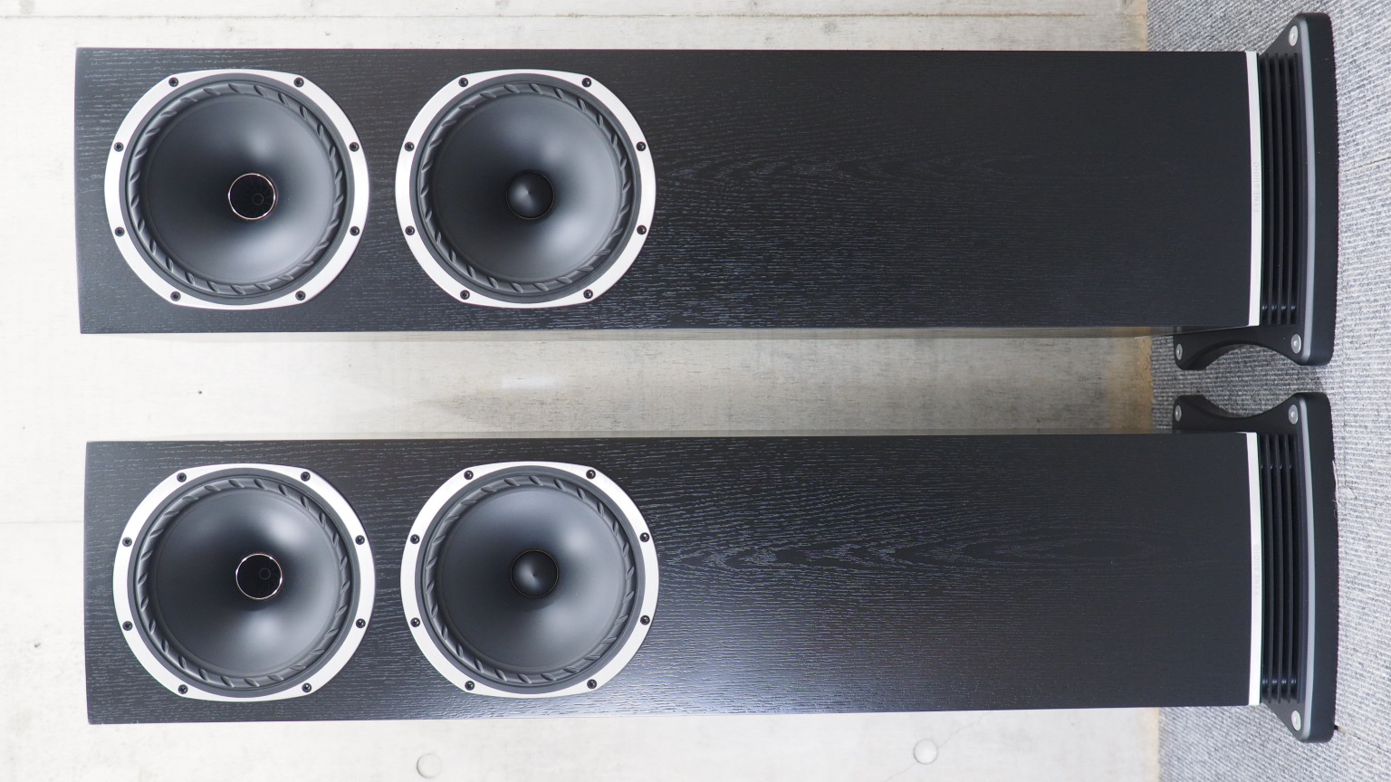 F500Sでは、このディフューザーを分厚い台座にマウントし開口部はキャビネットと一体化させることで、安定性を高め、その威力をさらに強力なものとしています。