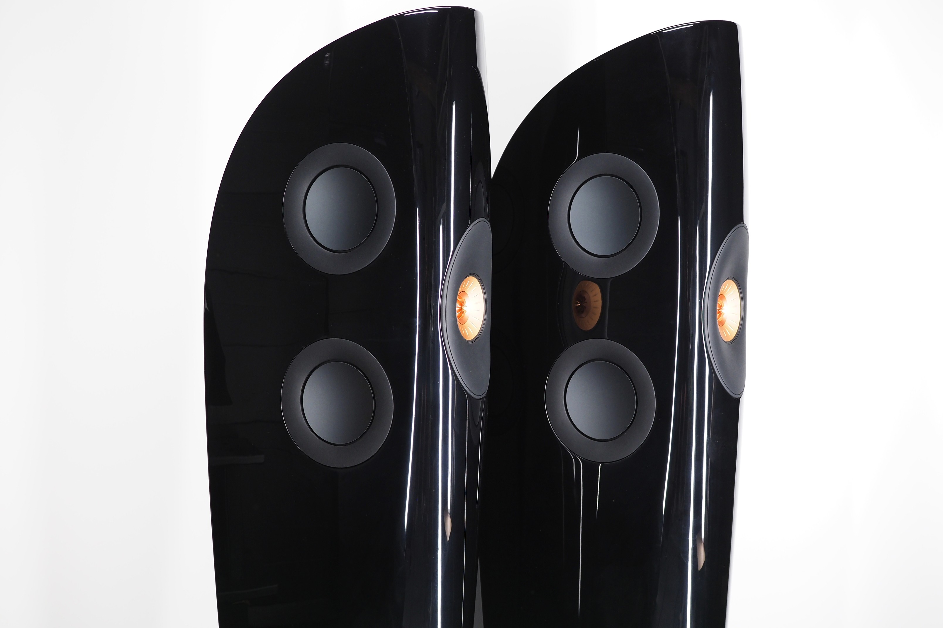 ○ 内蔵されたアンプは、KEF 社内で開発されました。ツイーターは、100W Class A/Bの内蔵アンプ出力/クラス によって駆動し、滑らかで、驚くべき細やかさでその高音域パフォーマンスを発揮します。ミッド/ベース ドライバーにおいては、280W Class D の内蔵アンプ出力/クラス を用いて、部屋中に行きわたるサウンドを生み出します。最大出力は108dBです。
