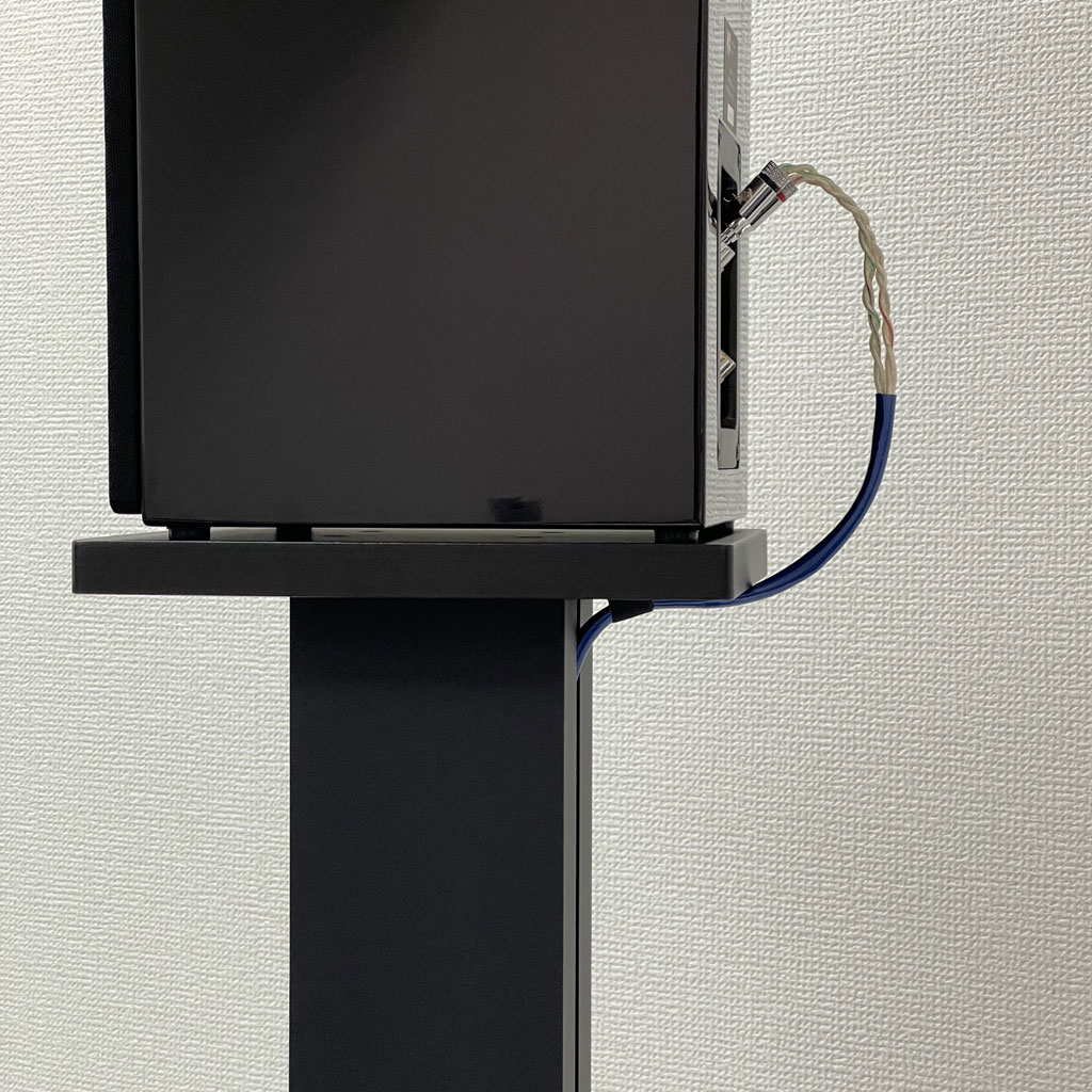 ⚫ スピーカースタンドの天板側もマジックテープを活用する事で、スピーカーケーブルを綺麗に収める事が可能です。