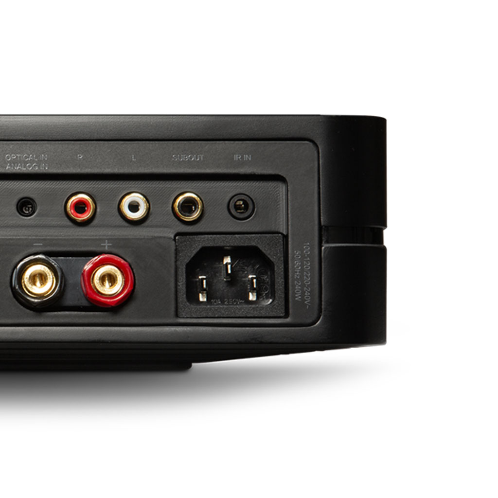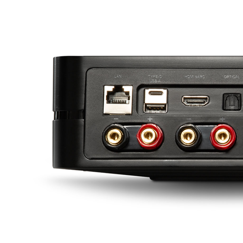 リビングルームにすっきりと収まるよう設計されたPOWERNODE は、HDMIeARC、センターチャンネルサポート、ワイヤレスサラウンドペアリング機能を搭載しています。ケーブル1 本でテレビに直接接続できるので、かさばるAV レシーバーは不要です。すっきりと、より優れたパフォーマンスを実現します。