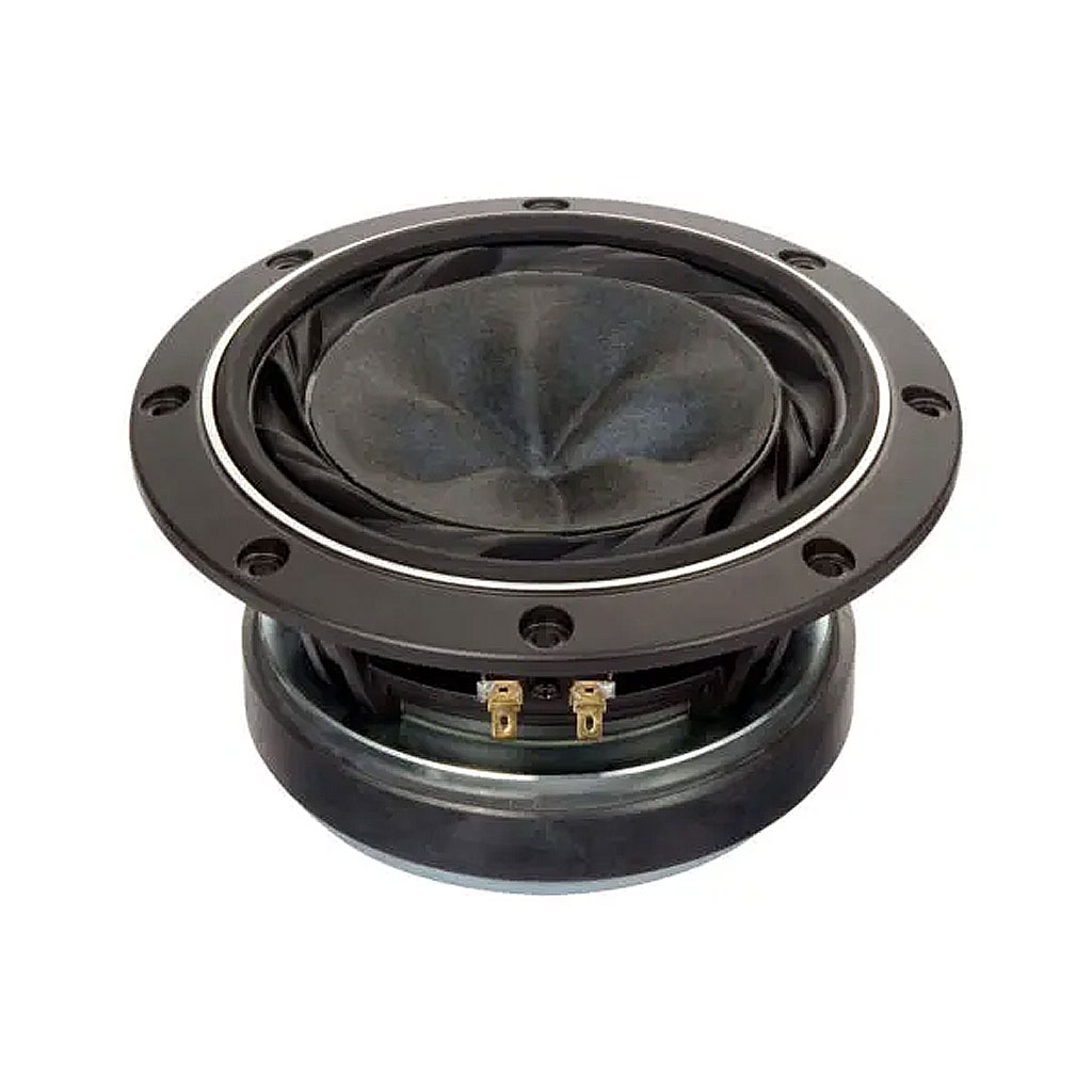 ・振動板材料は、木材パルプと非木材パルプを最適な比率で組み合わせたベース材と超高弾性カーボン・ファイバーやPBO、セルガイヤパルプなど高機能材によるハイブリッド構成で最適化し抄造。ウーハーの振動板として理想の剛性と内部損失を備え、金属系振動板に迫る伝播速度を実現しています。