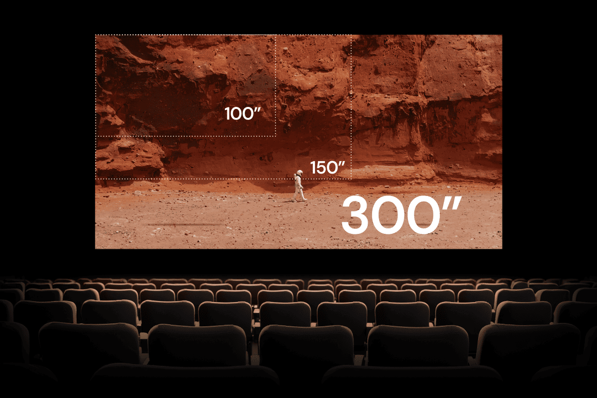 最大300インチでも圧倒的にクリア:VisionMaster Maxは40~300型のスクリーンで、シャープで安定した映像を提供。最大300型でも、くっきりとした精細感