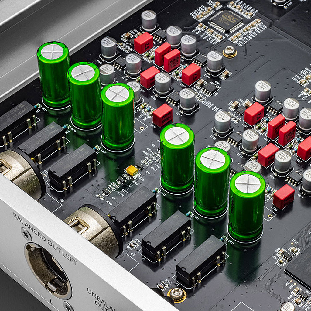 〇 フラッグシップ X1のテクノロジーを採用したフルバランスアナログ出力モジュールを搭載。広いダイナミックレンジと超低ノイズを実現し、音の明瞭さ、ディテールを忠実に再現します。