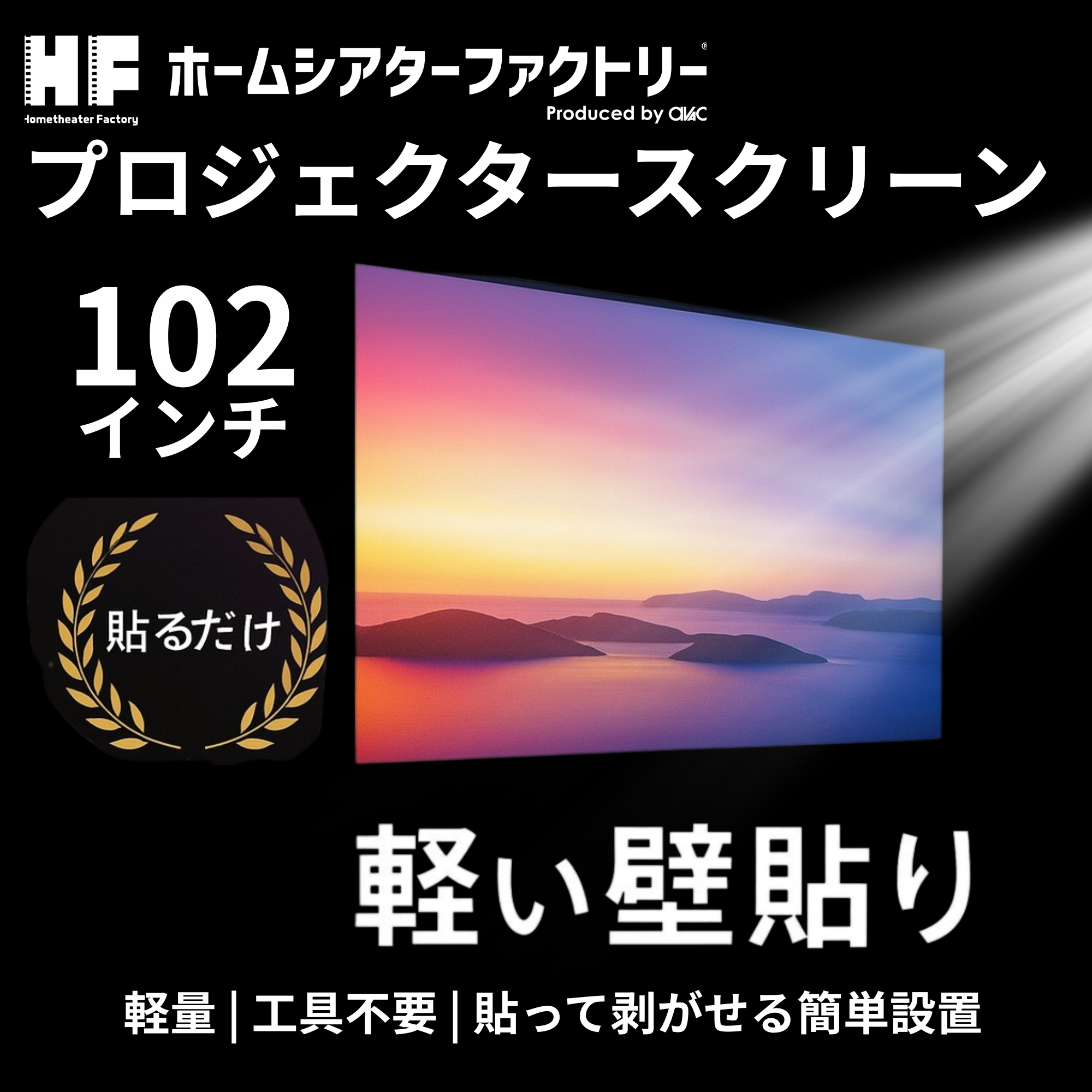 HF-SHEET102TPW Home theater Factory produced by avac [ホームシアターファクトリー] シートタイプ102インチ高画質スクリーン [貼って剥がせるタイプ]