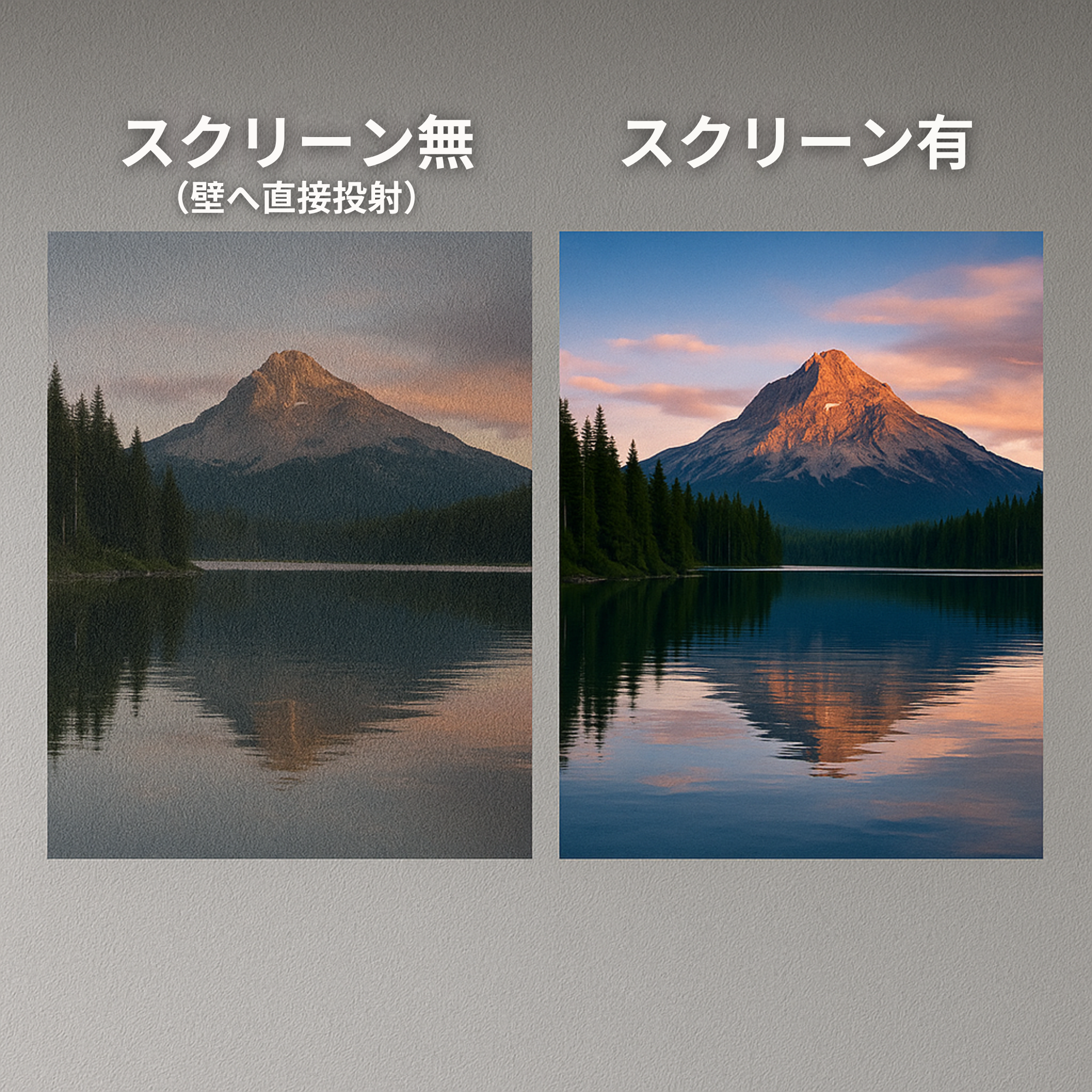 「HF-SHEET102TPW」を使用することで壁投射でもフラットな膜面を確保でき、プロジェクター本来の映像を映し出す事が可能になります。
