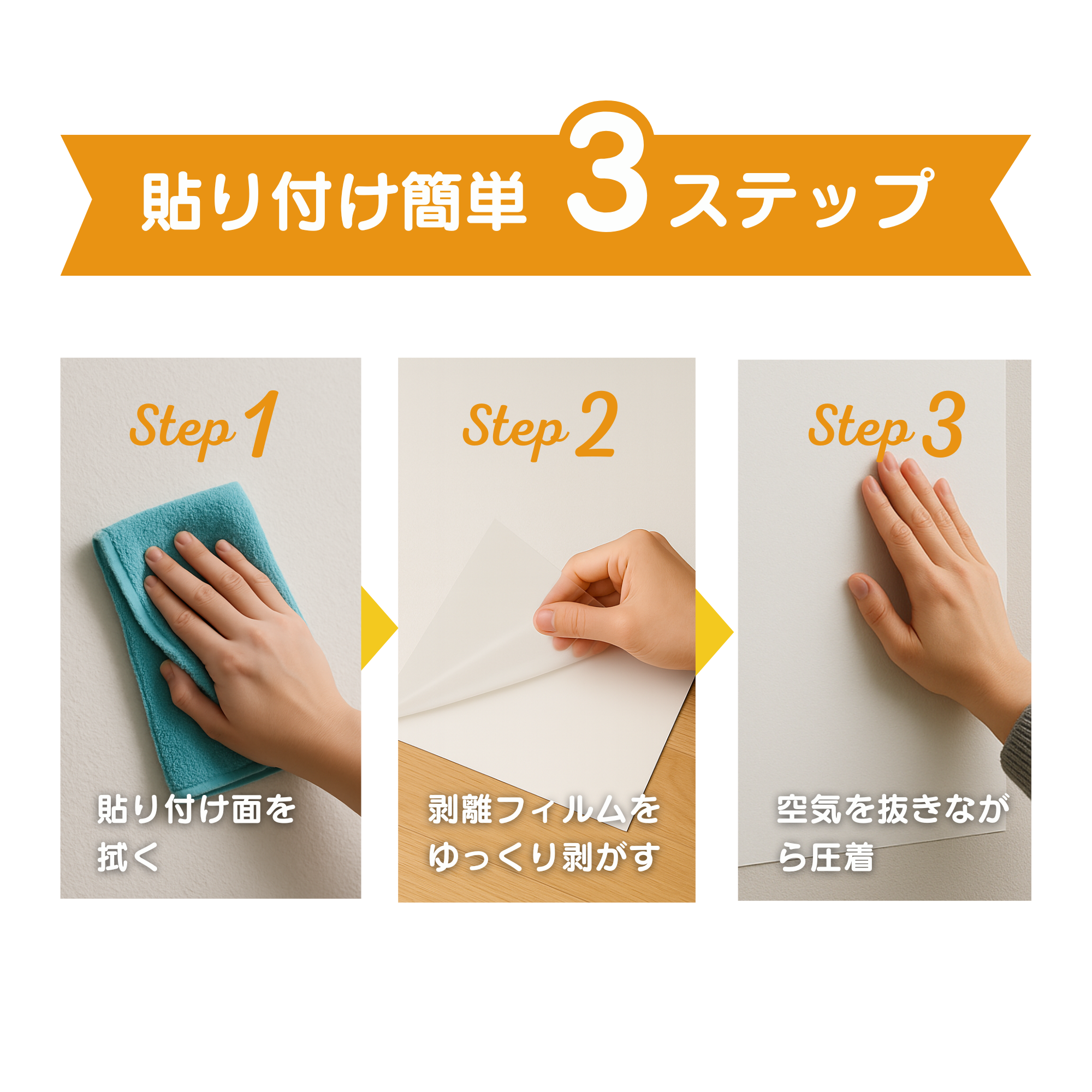 (※剥離を繰り返すと吸着面が劣化し、吸着力が低下するのでご注意ください)