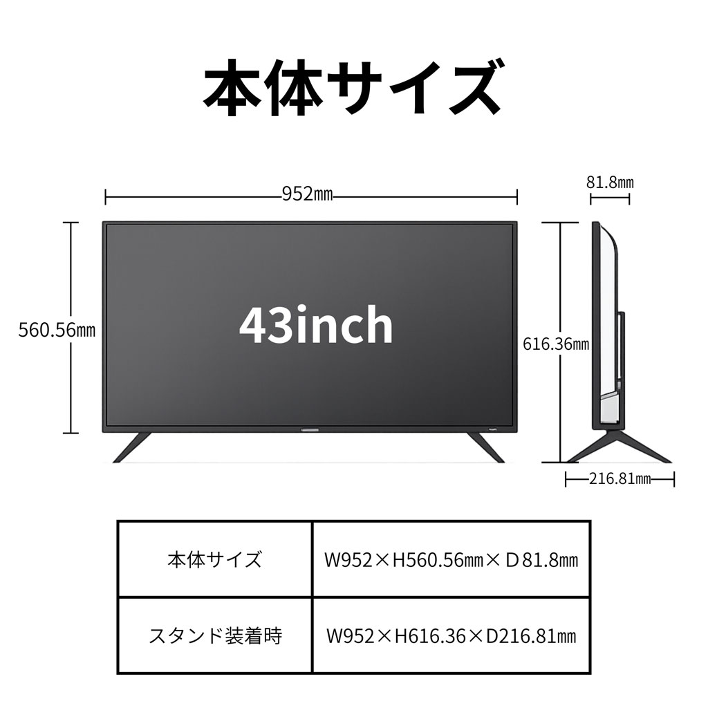 ・ 幅952 × 高さ616.3 × 奥行216.8(mm)※スタンド装着時