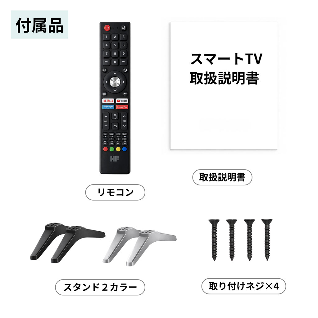 〇 付属品 取扱説明書/赤外線リモコン/自立スタンド2組(ブラック/シルバー)